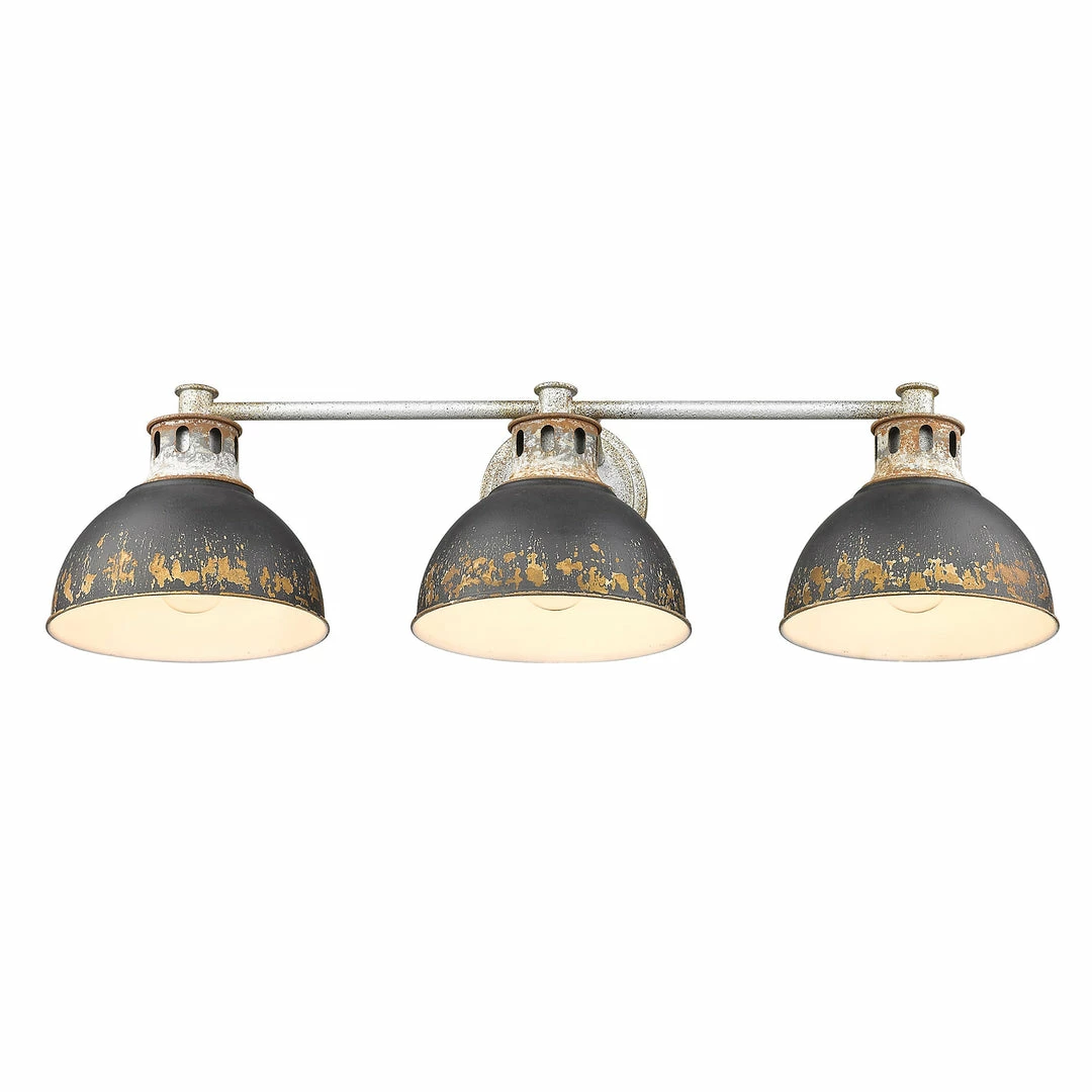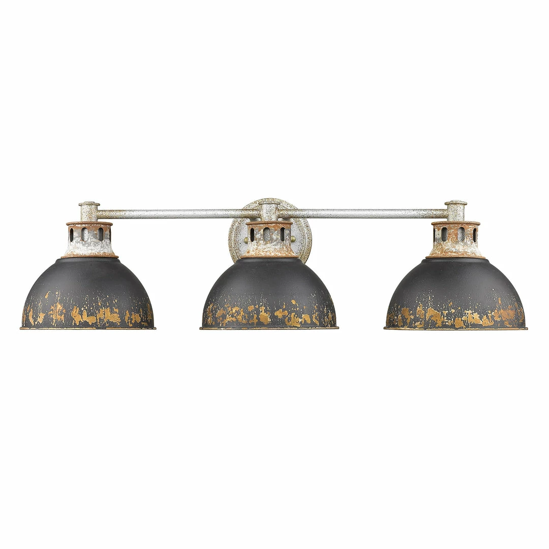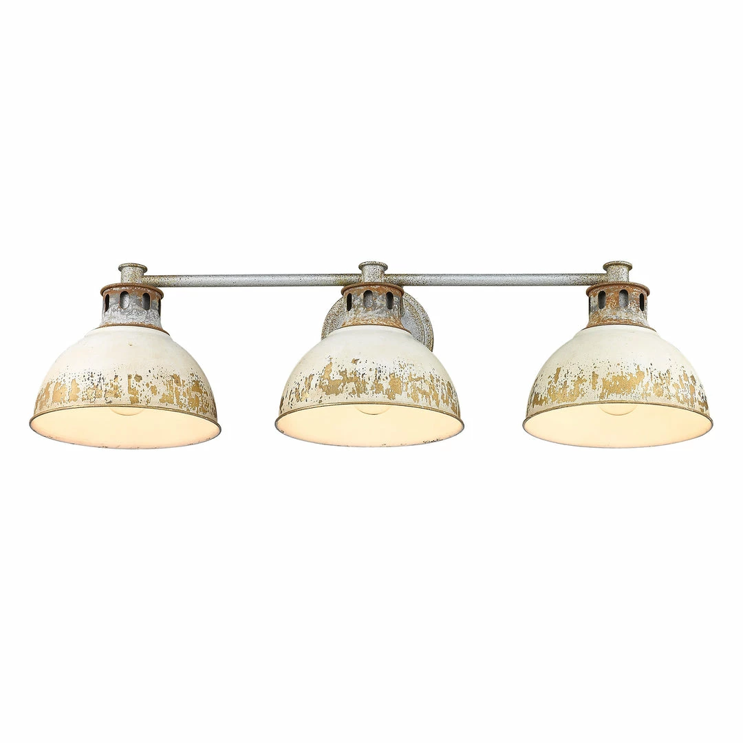 Kinsley has a rustic, vintage appeal that is perfect for homes with eclectic or farmhouse decor. The Aged Galvanized Steel frame balances the numerous antique shade color options offered in this collection. The hand-painted series has a distressed, weathered look. Choose a shade that fits your existing color scheme or opt to design around a variety of vintage shade options.