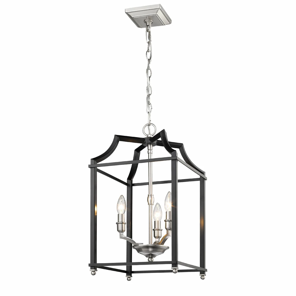 Leighton is a transitional and sleek minimalistic design. These attractive open-cage lanterns are two-toned and offered in multiple color combinations. The smooth painted cages house exposed lamps. The beautiful, airy aesthetic is heightened by the elegance of the exposed candelabras and strong lines. Strategically integrated plated metal accents finish the design.