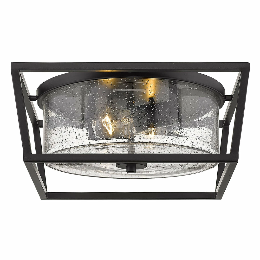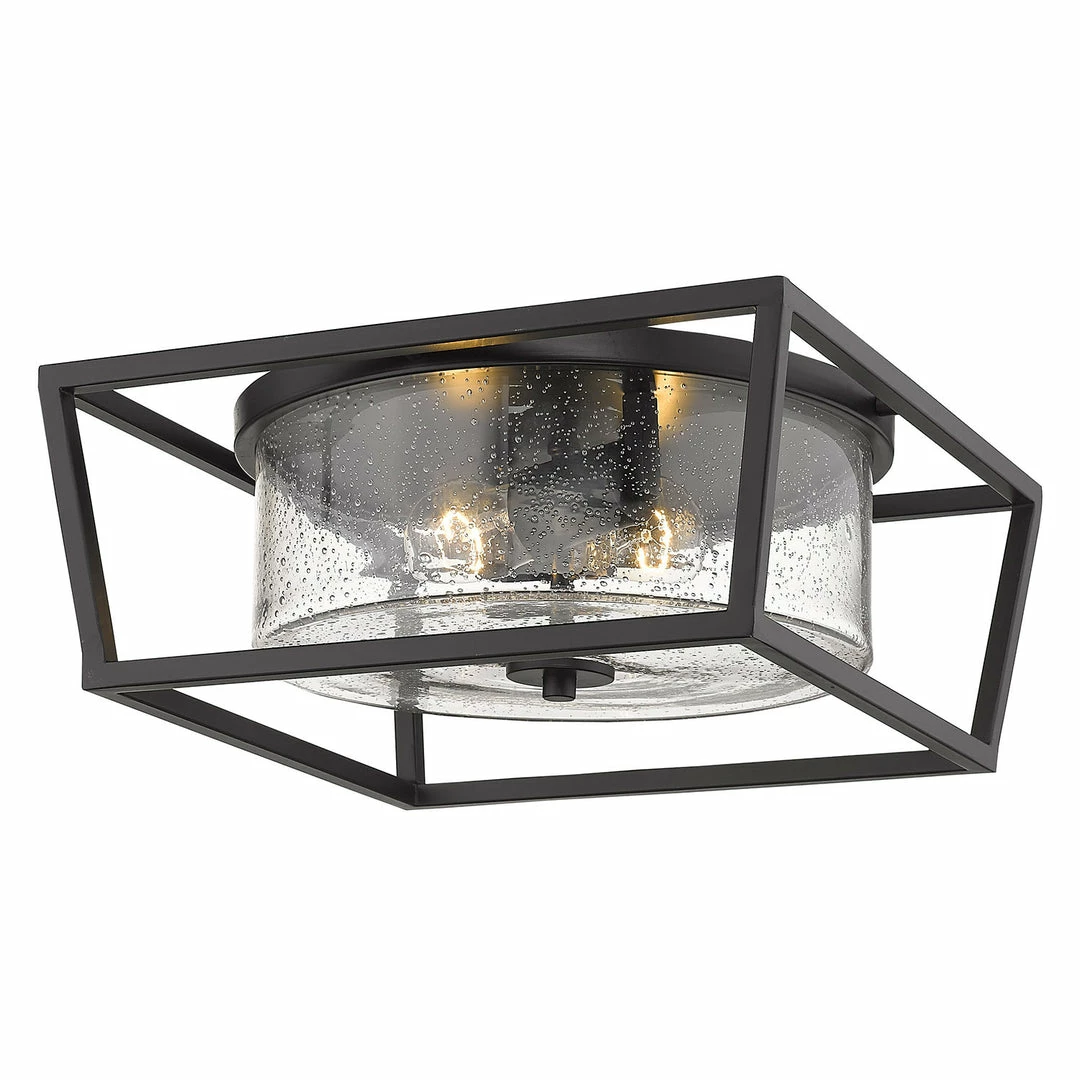 With seeded glass and contemporary finishes, the simplicity of the Mercer Collection is suitable for transitional to modern interiors. Bold, graphic lines create an open-cage design. The fixtures are available in multiple accent colors to match or contrast the smooth cages. This flush mount provides widespread ambient lighting.
