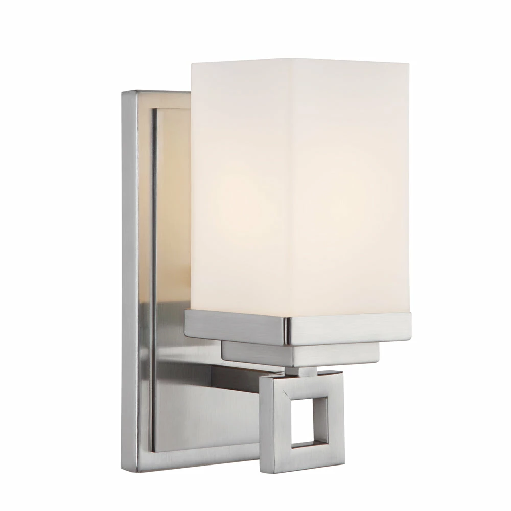 Give your bathroom an update with this fresh, contemporary style from Golden Lighting. The Pewter finish of the Nelio bath collection complements a multitude of styles and the square Cased Opal Glass has two layers to evenly diffuse the bright light over a vanity or mirror for grooming. 1-light bath vanities and sconces are popularly used in halls, stairways, and foyers as accents. This fixture is approved for damp locations.