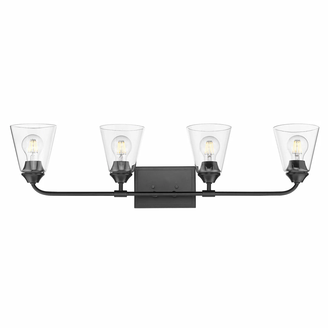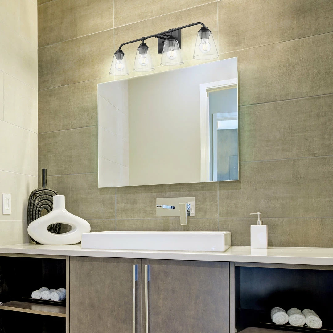 Create an atmosphere that’s welcoming to visitors and residents alike with the Ormond Collection. This versatile series is designed to work with a number of dรฉcor styles. Straight lines are balanced by gentle curves for a contemporary look in multiple finishes. Straight lines are balanced by gentle curves for a contemporary look that works well with the modern finish and glass options. This four-light bath vanity fixture can be mounted up or down to capture that specific design you were looking for. Select a shadeless option for a minimalist aesthetic or choose between multiple glass options.