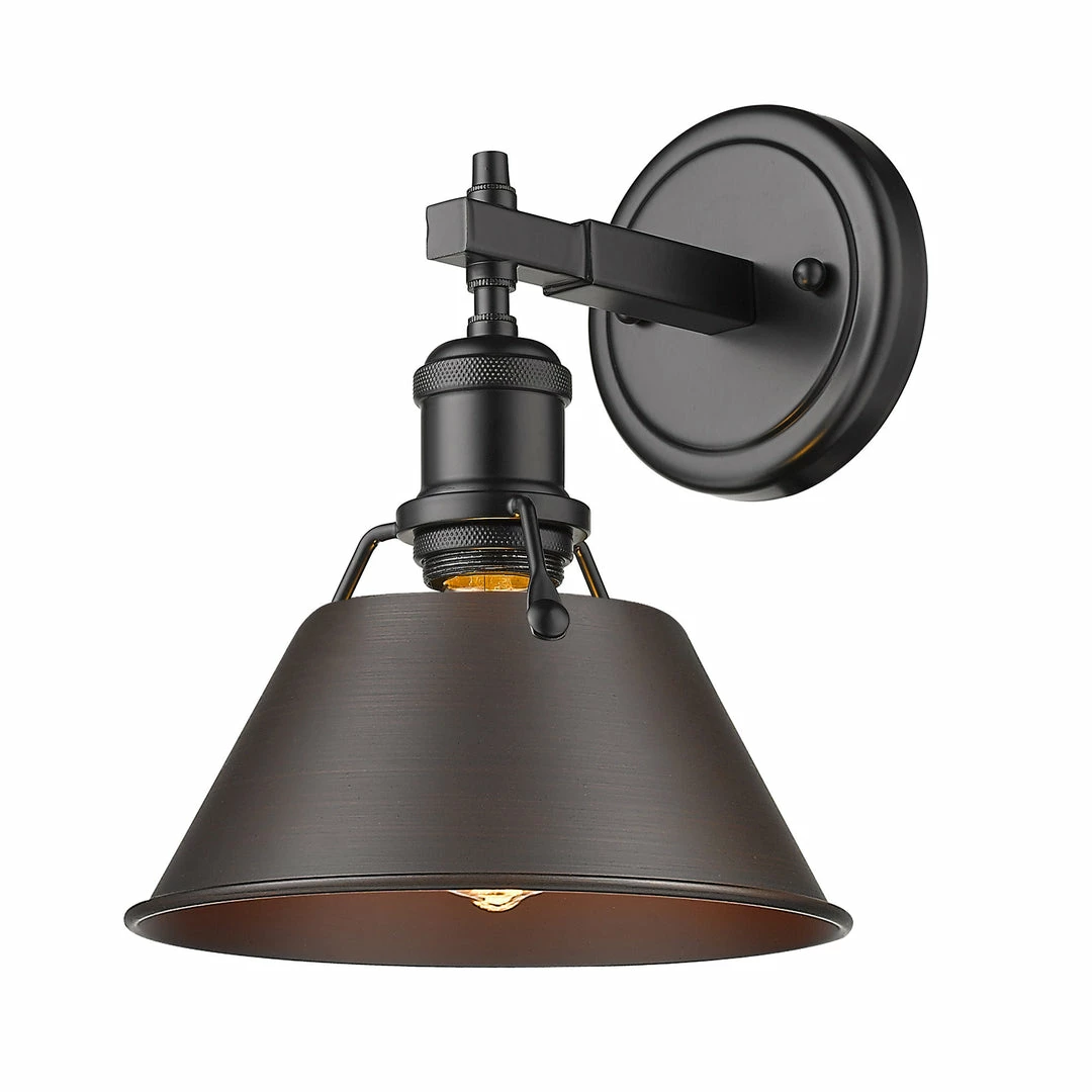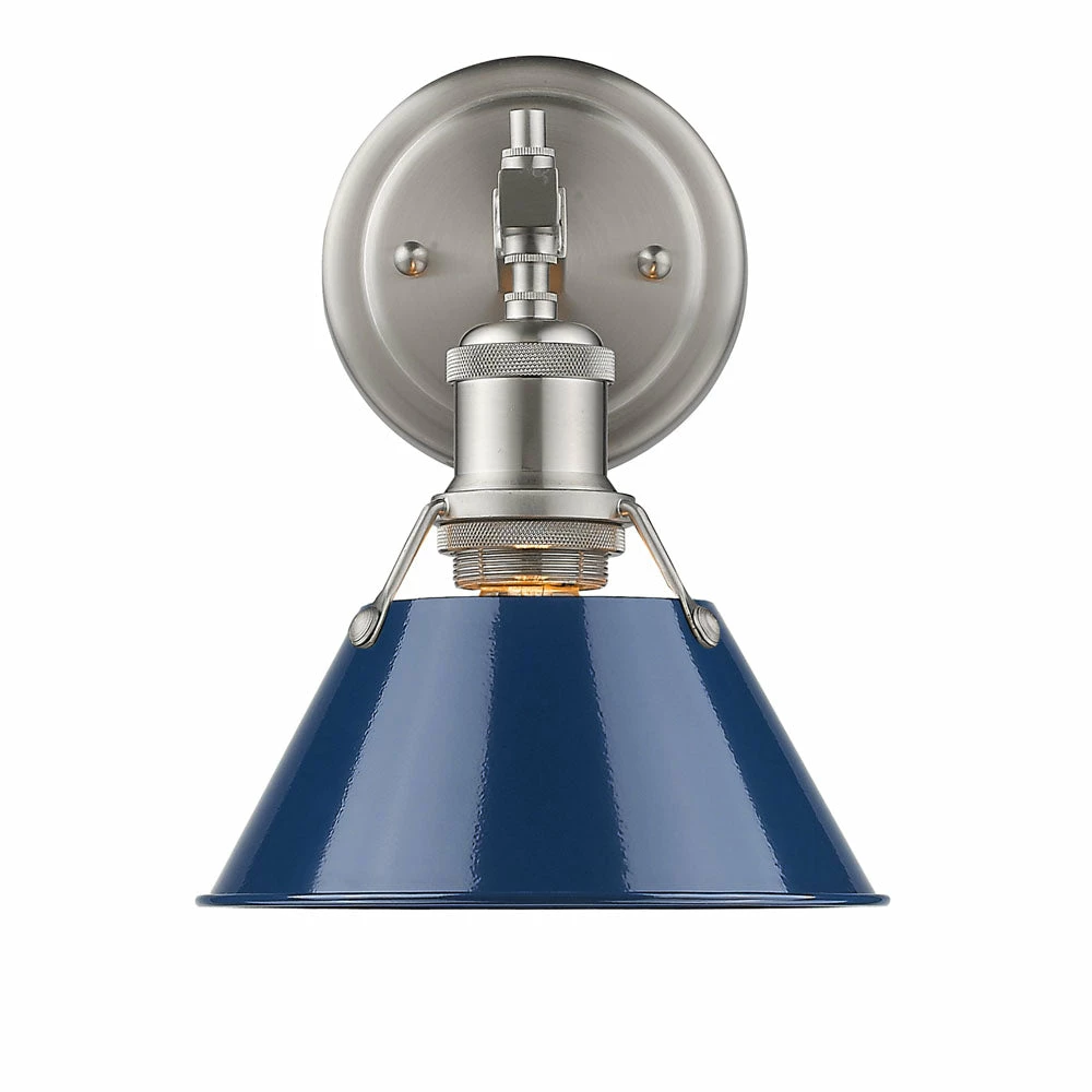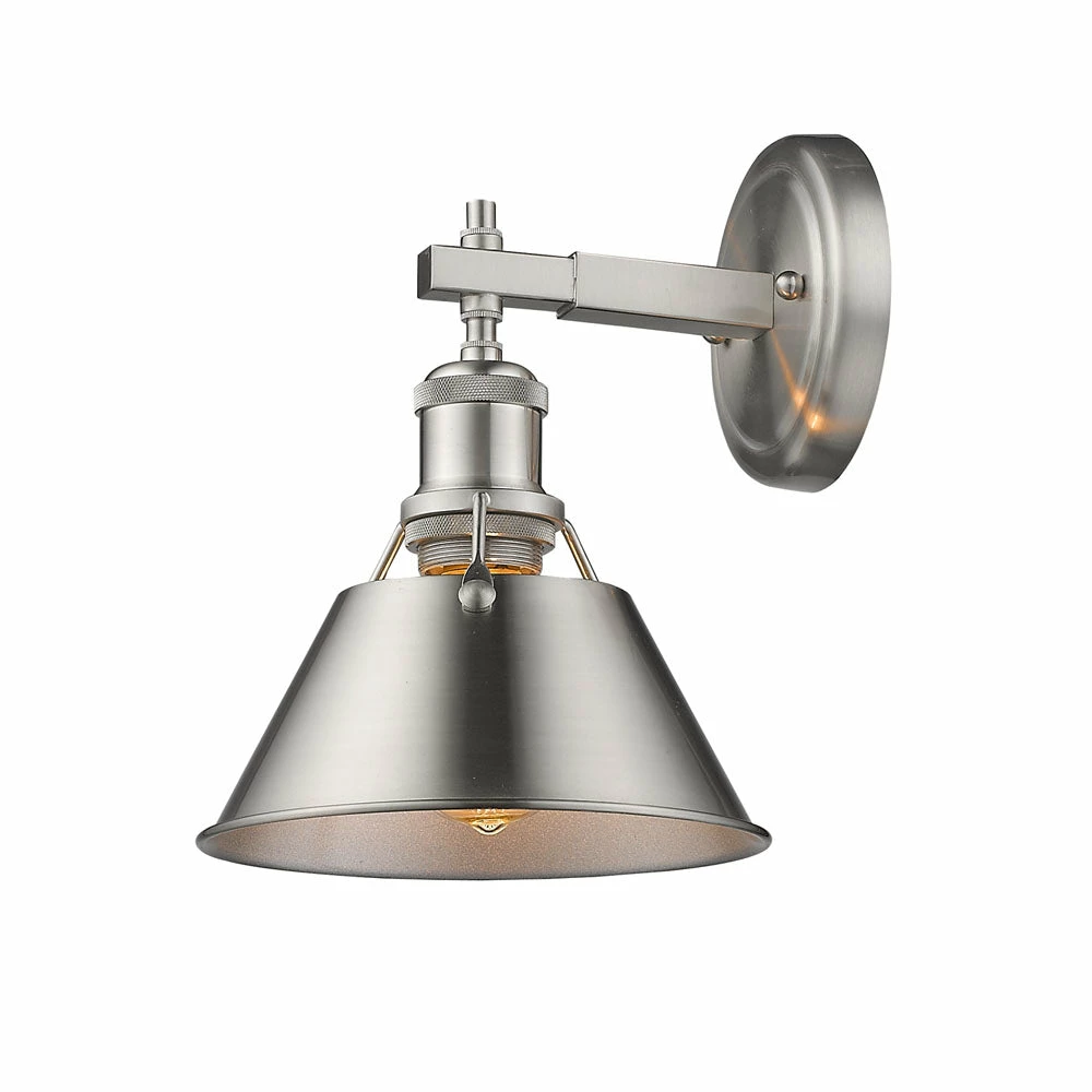 Orwell is an extensive assortment of industrial style fixtures. The beauty and character of the collection are in the refined details. This transitional series works well in a variety of settings. Partial shades shield the eyes from possible hot spots, while the open tops tease onlookers with a view of the sockets and bulbs. The design allows light and heat to escape from above and below the metal shades, providing both task and ambient lighting. Edison bulbs are recommended to complete the vintage, industrial look of the fixtures. A choice-selection of finish and shade color combinations heighten the appeal of the series. Single pendants are suspended from woven fabric cords while multi-light fixtures are rod-hung.