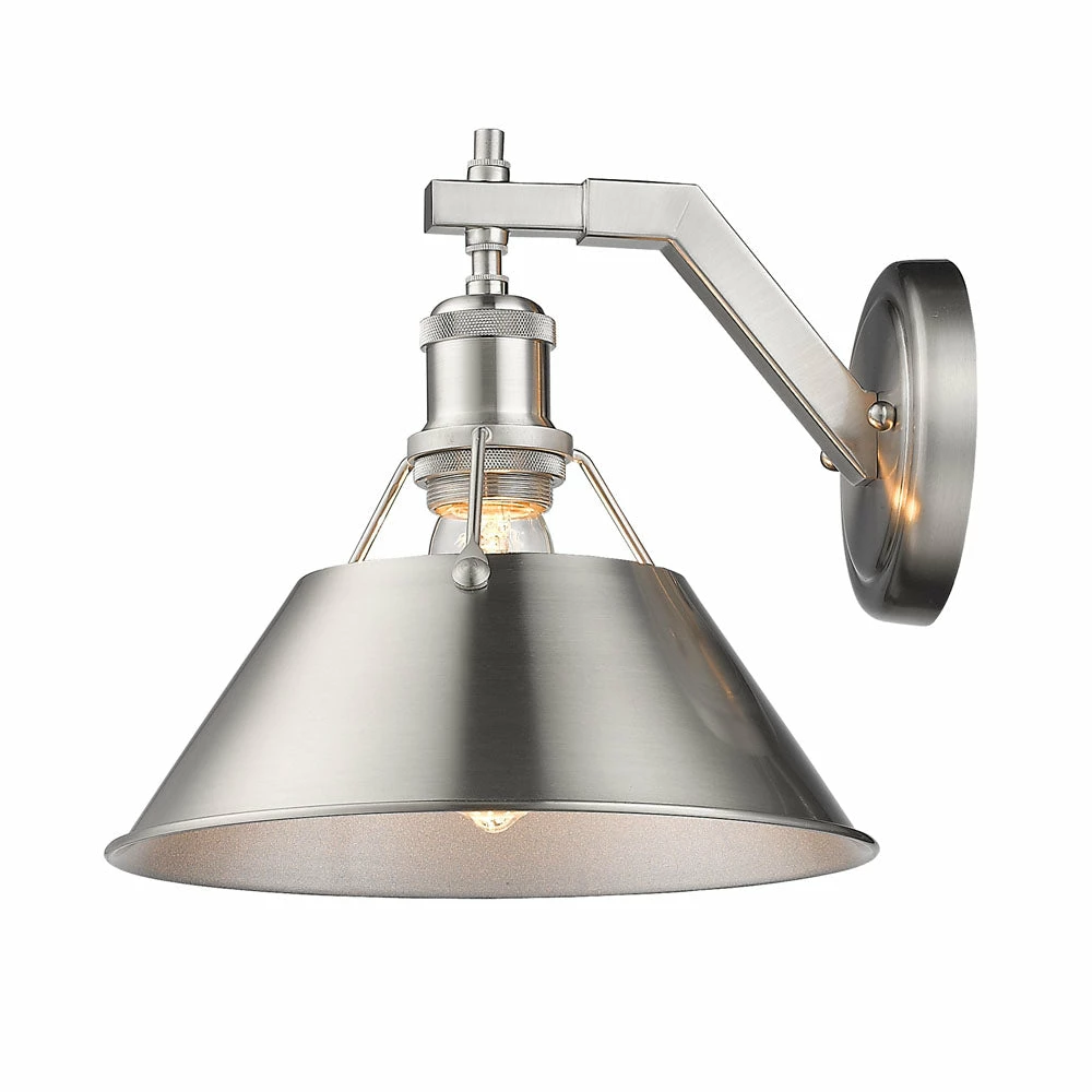 Orwell is an extensive assortment of industrial style fixtures. The beauty and character of the collection are in the refined details. This transitional series works well in a variety of settings. Partial shades shield the eyes from possible hot spots, while the open tops tease onlookers with a view of the sockets and bulbs. The design allows light and heat to escape from above and below the metal shades, providing both task and ambient lighting. Edison bulbs are recommended to complete the vintage, industrial look of the fixtures. A choice-selection of finish and shade color combinations heighten the appeal of the series. Opal glass and clear glass shades are available for bath fixtures. Single pendants are suspended from woven fabric cords while multi-light fixtures are rod-hung.