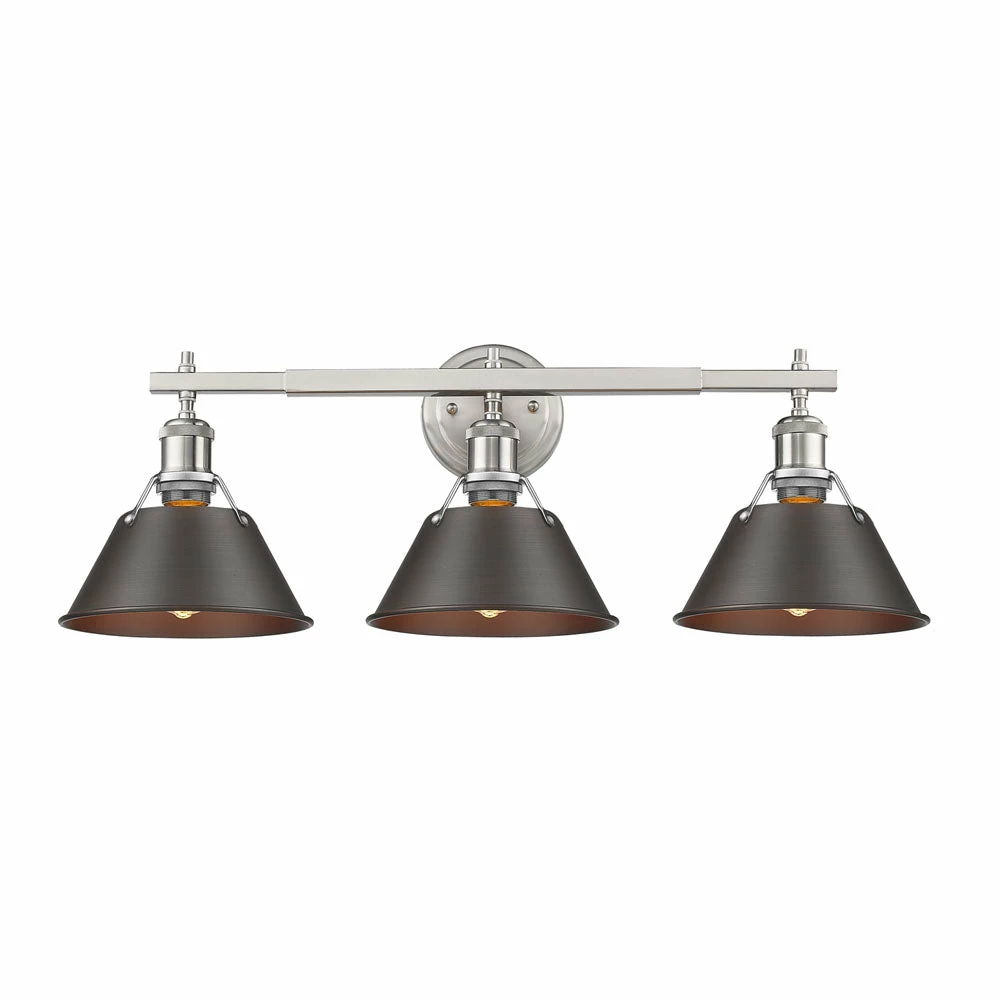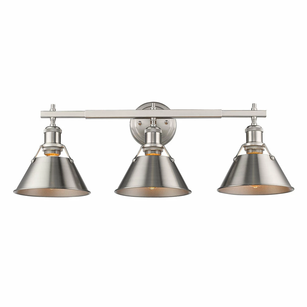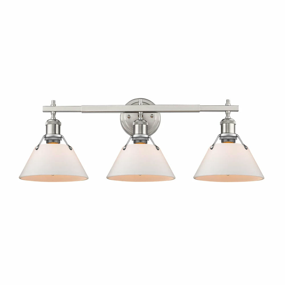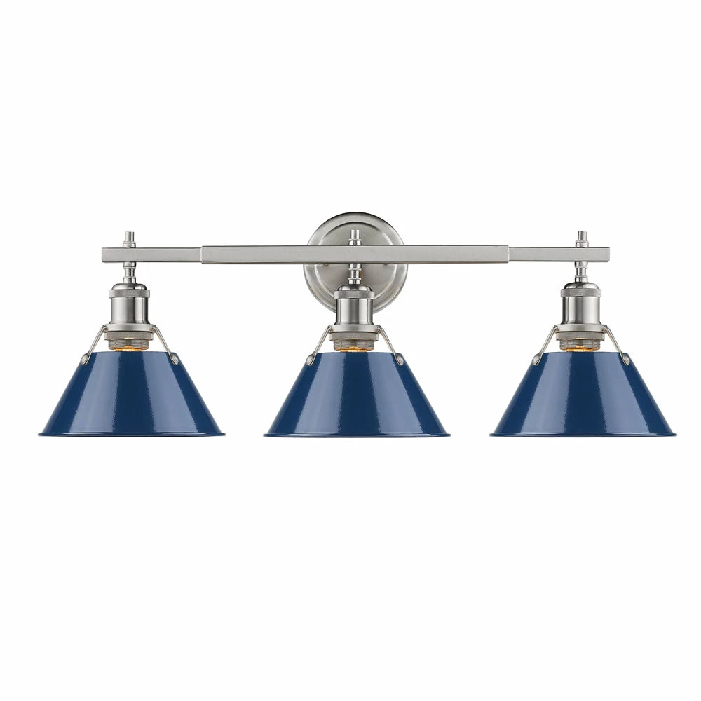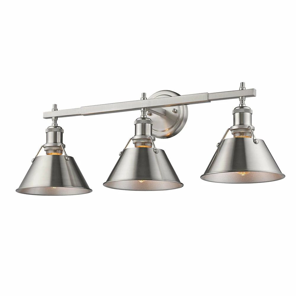 Orwell is an extensive assortment of industrial style fixtures. The beauty and character of the collection are in the refined details. This transitional series works well in a variety of settings. Partial shades shield the eyes from possible hot spots, while the open tops tease onlookers with a view of the sockets and bulbs. The design allows light and heat to escape from above and below the metal shades, providing both task and ambient lighting. Edison bulbs are recommended to complete the vintage, industrial look of the fixtures. A choice-selection of finish and shade color combinations heighten the appeal of the series. Single pendants are suspended from woven fabric cords while multi-light fixtures are rod-hung.