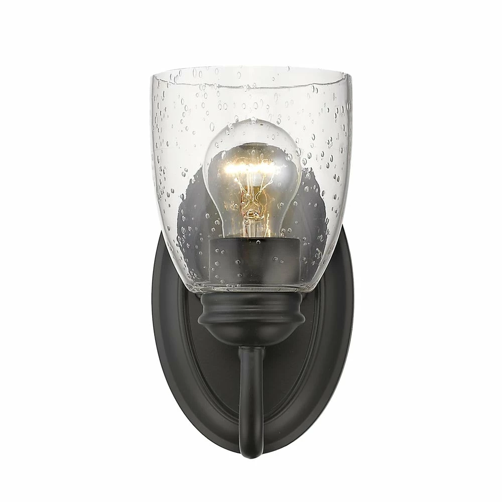 Simple and elegant, the Parrish collection is a lovely blend of masculine and feminine, old and new. A number of versatile finishes are available. The modern finishes overlay graceful, traditional arms for a transitional look. Matching socket covers add a touch of color to the clear, textured seeded glass. The contemporary shape of the glass and simple finish give this otherwise classic silhouette a modern update. Perfect for traditional to transitional interiors, this charming collection is a timeless beauty. This family offers a variety of fixtures to suit all of your interior lighting needs. Sconces are popularly used in halls, stairways, and foyers as accents, but this 1-light bath vanity is UL-approved for damp locations.