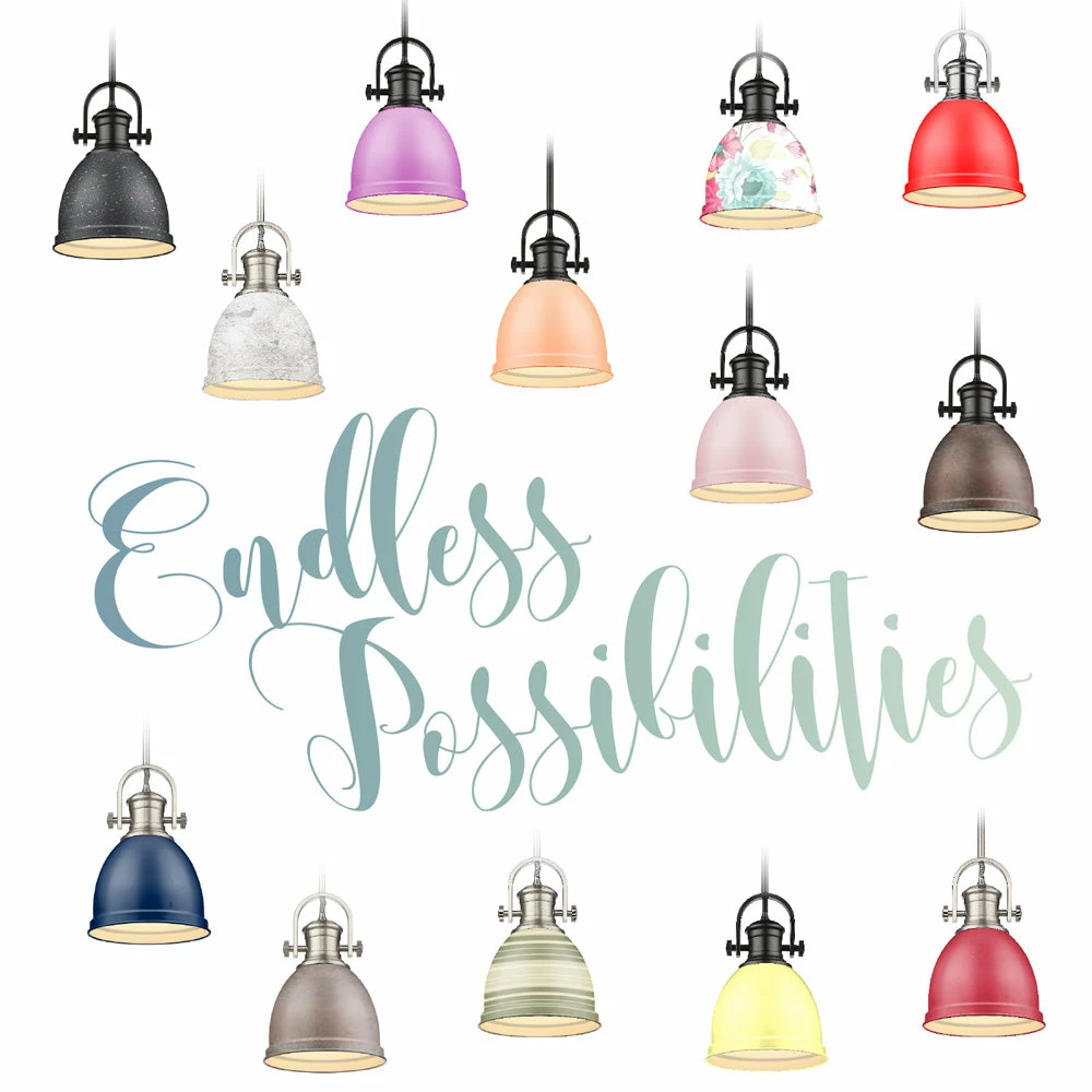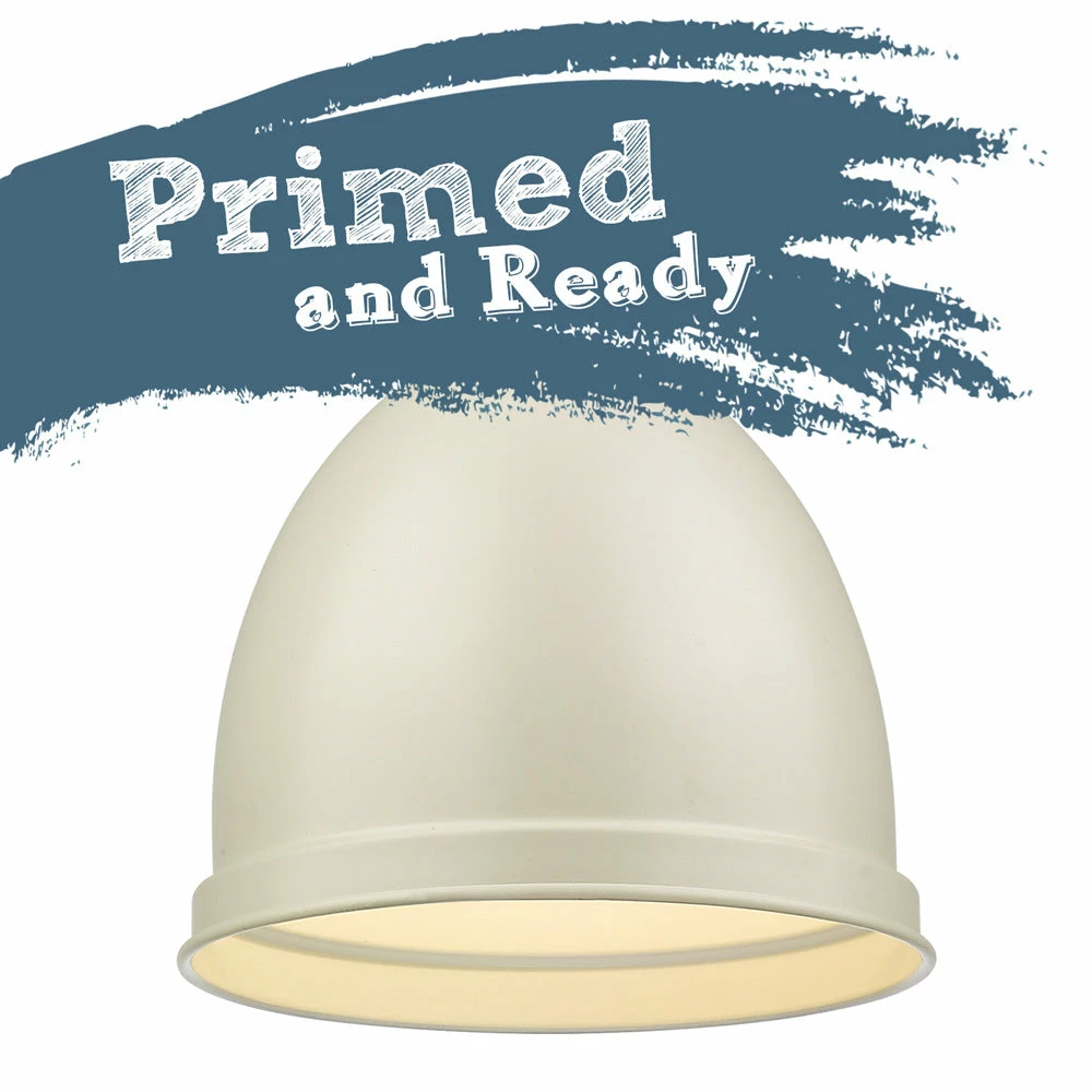 Do you enjoy the sense of accomplishment that comes with creating something unique? Perfect for sophisticated crafters, our Primed collection allows adventurous DIYers to use personal style to light up their space. These vintage-inspired pendants arrive “primed” and ready to be decorated. So, get creative! Add a personal stamp, color match to your favorite hue, or make something that’s beautifully you. Choose between three hardware finish options and two shade sizes to suit your application needs. This pendant may be hung individually or arrayed as a set.