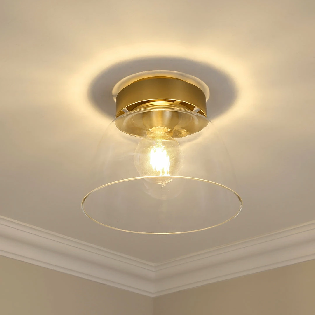 Remy’s clear modern glass and smooth finish options create versatile looks that complement a wide range of styles. The simple canopy is available in select finishes to create minimalist looks that pair well with existing decor. Vintage-inspired, the wide Clear Glass offers widespread illumination and allows for quick bulb changes. Hang these damp-rated fixtures in a hallway or bathroom.