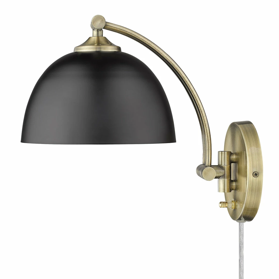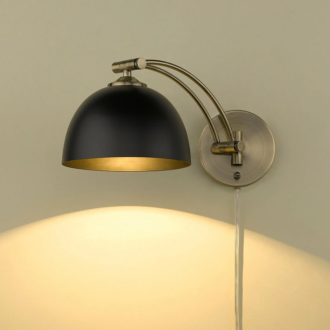 Functional design inspired by modern style, Rey is a prime choice for refined illumination. Pivoting, parallel arms sweep and connect two industrial-inspired lock pins. A wide shade drops elegantly from the arm. Great for task lighting, the moving arm and adjustable shade can be positioned and locked in place for style and function. The versatile series offers two installation options: Plug-in or Hardwire. The collection is available in a choice-selection of finish and shade color combinations. The interior of the shade is painted to match the exterior.