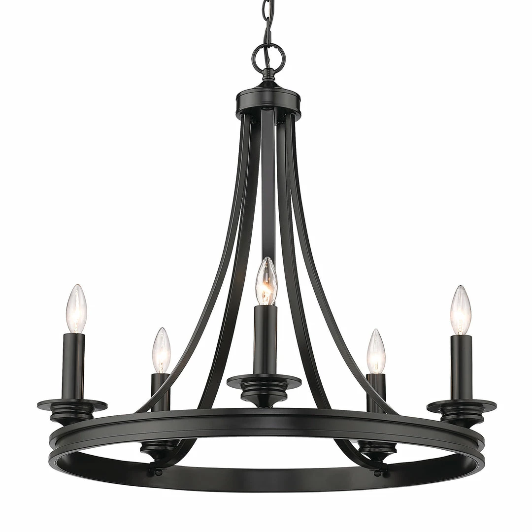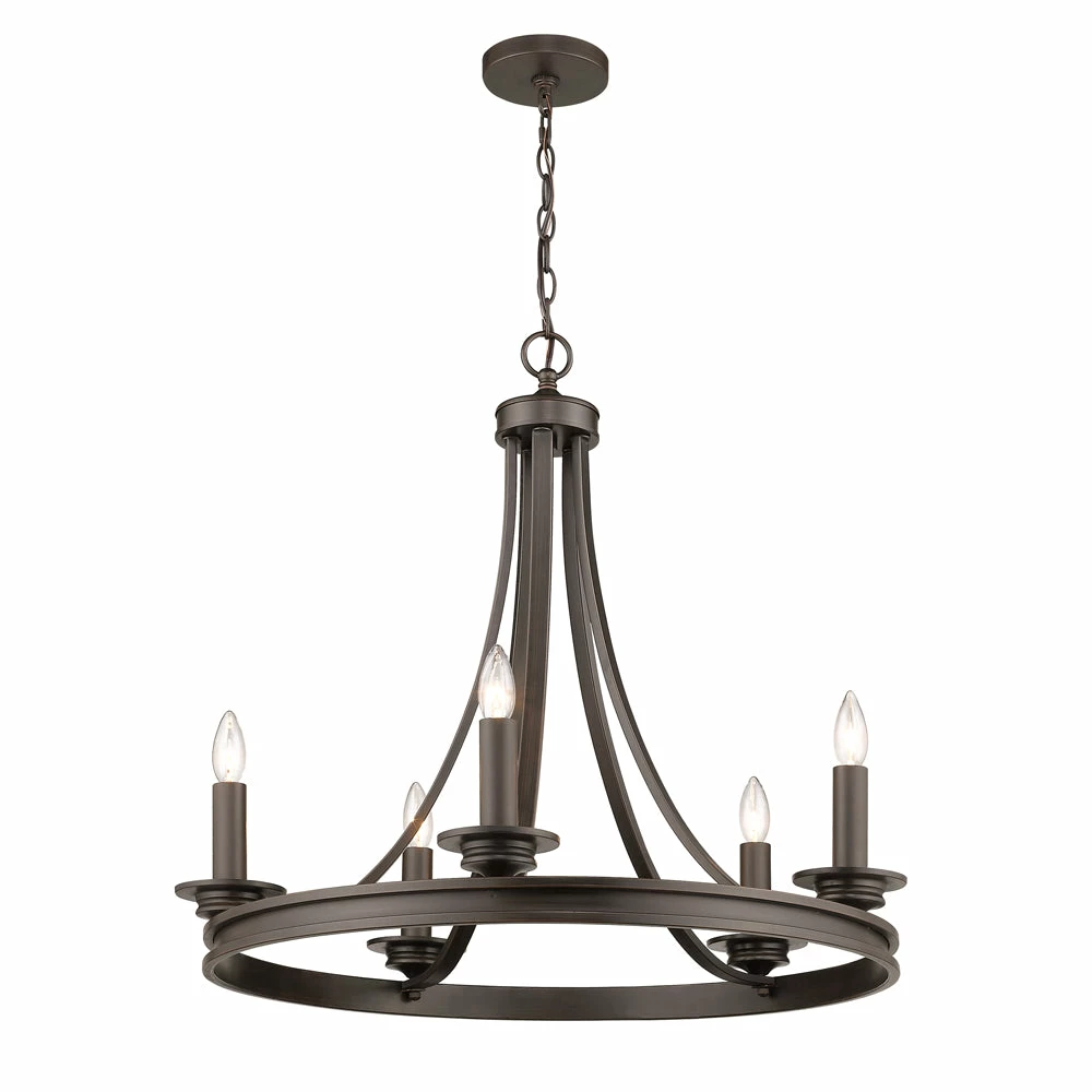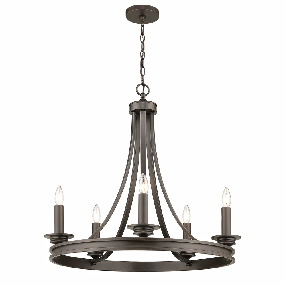 Transitional and unobtrusive, Saldano features the clean look of candles balanced on a simple ring. A beautiful silhouette is formed as reaching arms curve and connect atop Saldano’s array of lights. Available in select finishes, this 5-light chandelier provides a modern update in a classic form that is both timeless and versatile.