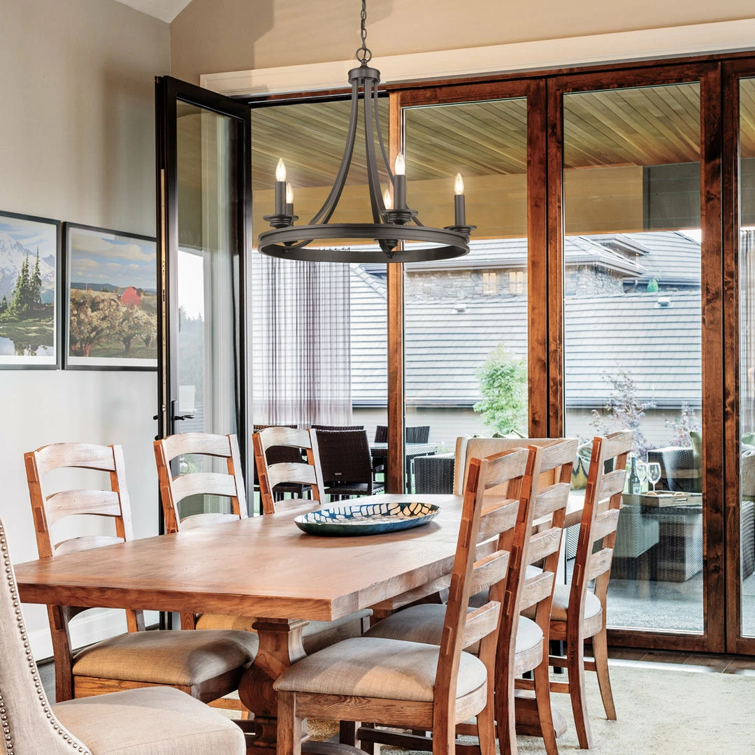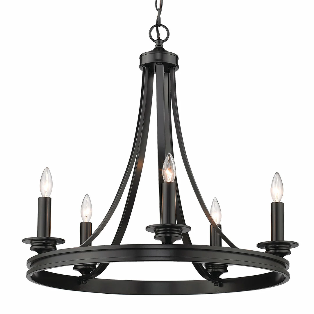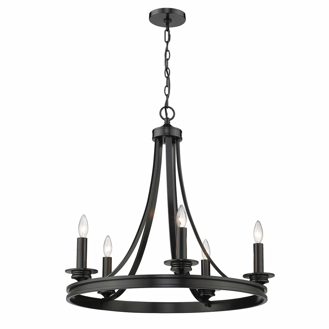Transitional and unobtrusive, Saldano features the clean look of candles balanced on a simple ring. A beautiful silhouette is formed as reaching arms curve and connect atop Saldano’s array of lights. Available in select finishes, this 5-light chandelier provides a modern update in a classic form that is both timeless and versatile.