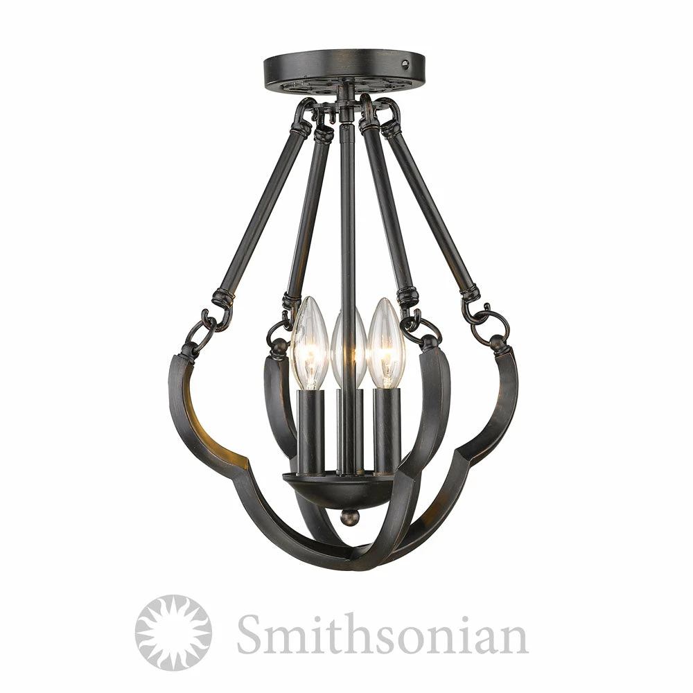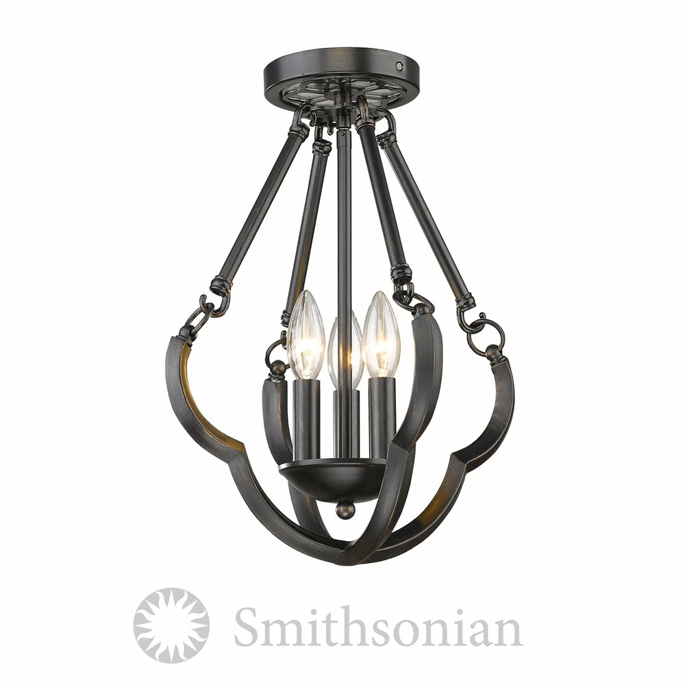 The world famous Smithsonian Castle, in Washington, DC is a picturesque castle composed of red sandstone and Medieval-Revival architectural details. Details like the large circular window that sits high above its northern entrance. This north-facing window was strategically placed to catch the light of the sun. The beautiful window is dissected by a bold patterned design. The windowโs concept and appearance inspired our Smithsonian Saxon Collection. Composed of durable steel, these beautiful fixtures are available in various โwindow-inspiredโ silhouettes. Evocative of a window, all of the canopies and backplates in the collection feature reflective mirror glass segmented by the same pattern. Use this unique collection, to add beauty to your home. This convertible semi-flush provides widespread ambient lighting.