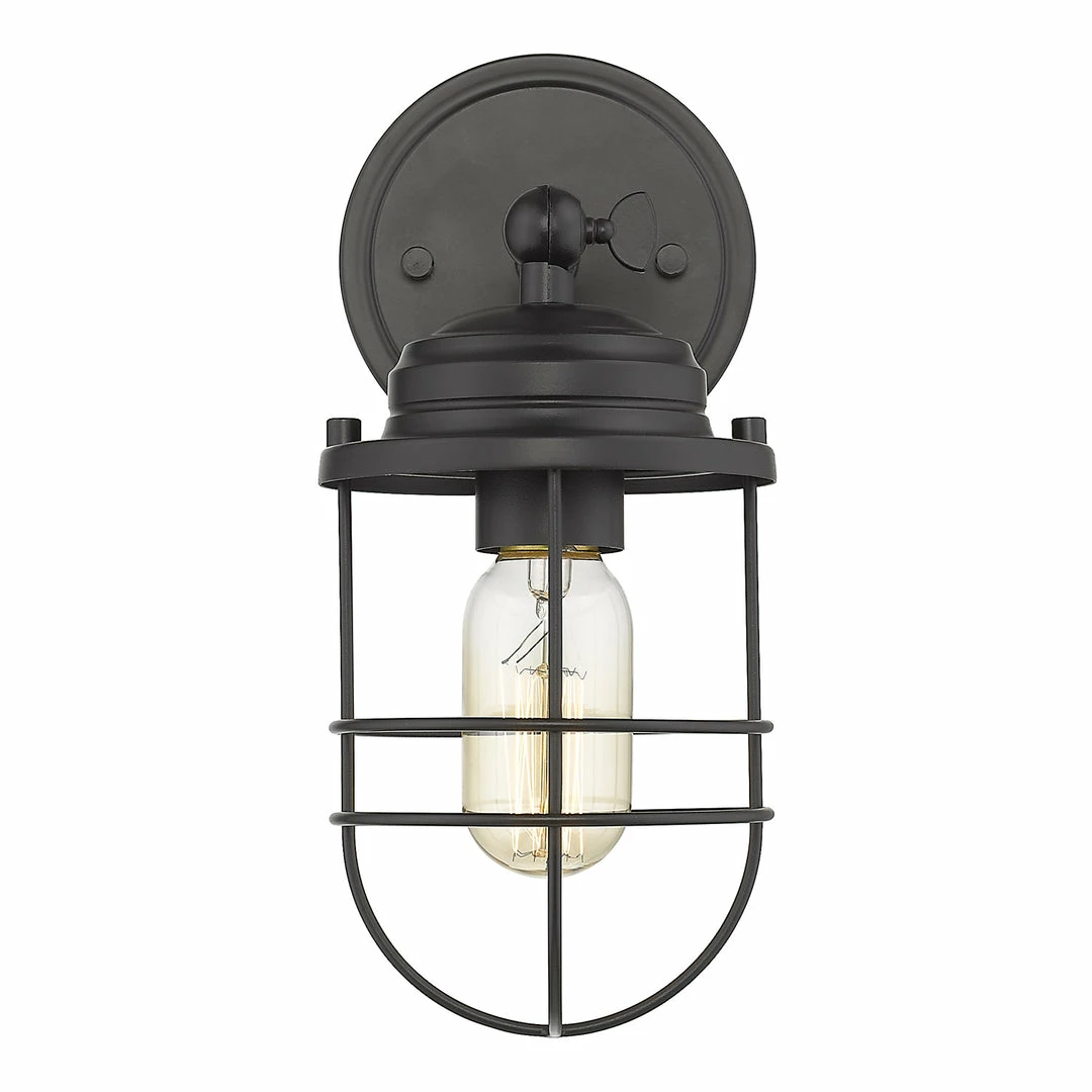 Nautical-inspired, Seaport is a collection of industrial fixtures to create your seaside retreat. Offered in a selection of finishes, the New England style is enhanced by protective cages that shield the otherwise exposed bulbs. Created to suit the needs of many, ball joints permit a multitude of configurations. Point all of the metal shade down for directional task lighting or angle it out to fit a tight space. Sconces are popularly used in halls, stairways, and foyers as accents. This sconce is approved for damp locations.
