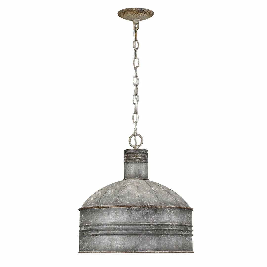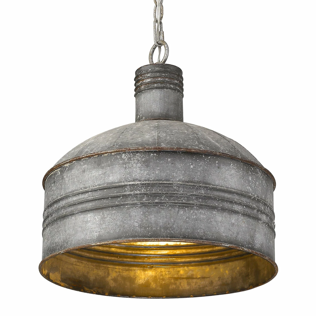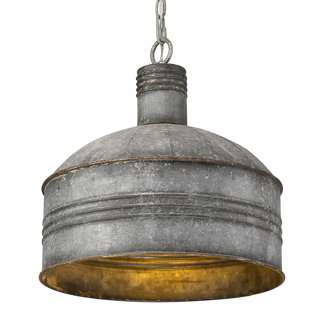 Enhance the authenticity of your rustic space with Shiloh. Inspired by the tools and materials naturally available to cattle ranchers and farmers alike, this fixture is the perfect addition to homes with farmhouse décor. Reminiscent of a steel silo, the design features a Galvanized Steel finish that is freckled and faded by age. The white and gray spots add to the look of a refurnished, weathered antique with a lot of life left to live.