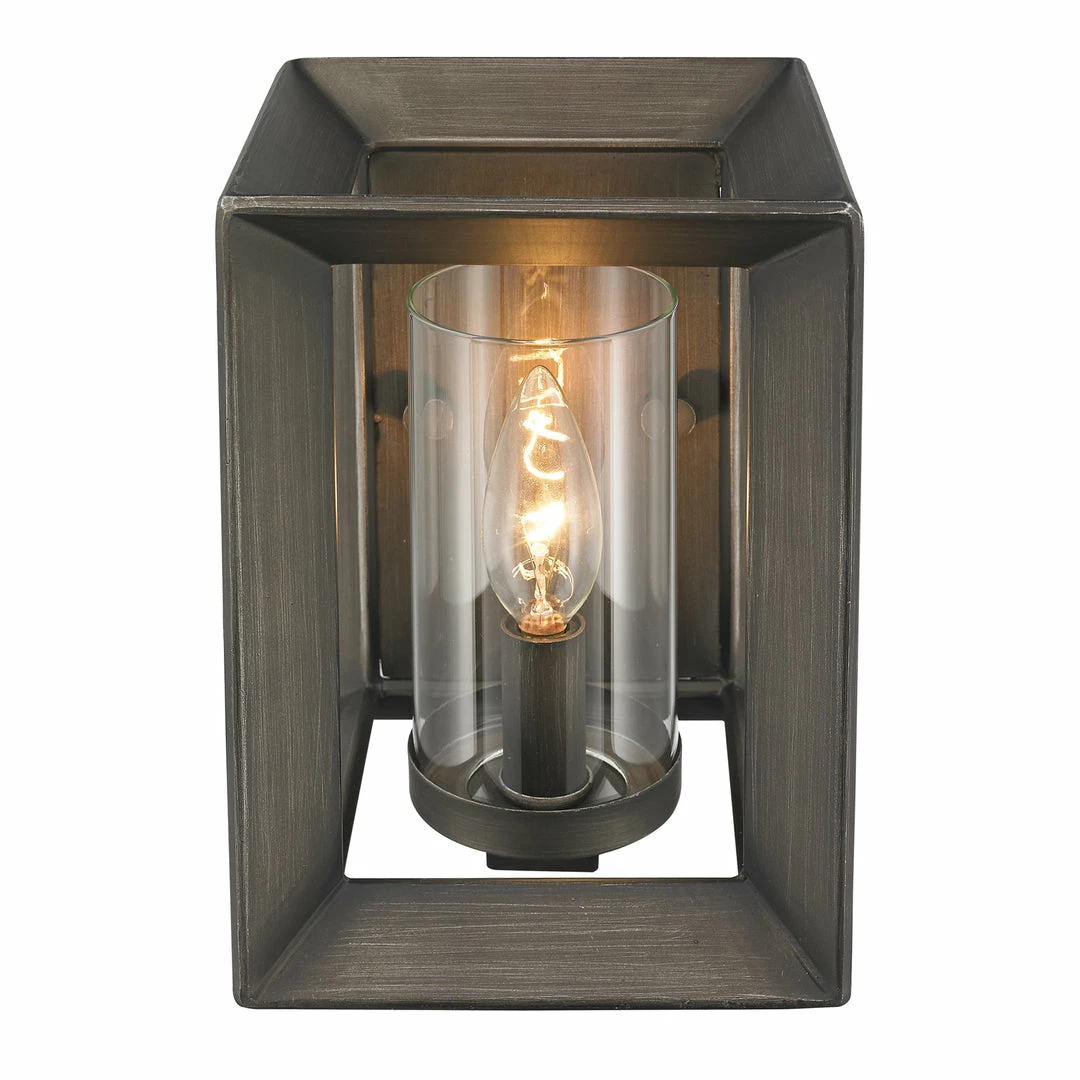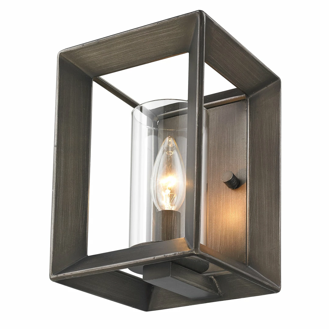 Modern lanterns featuring a handsome beveled cage design. Make an elegant statement in the Smyth collection. Clean geometry creates contemporary style with steel candles and candelabra bulbs encased in select glass options. The fixtures are offered in a variety of finishes. Popularly used in halls, stairways, entries and as accents, this eye-catching sconce can be used individually or paired to create soft task lighting.
