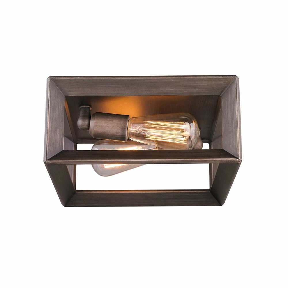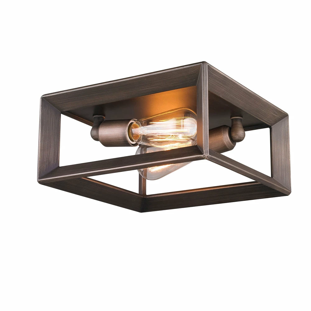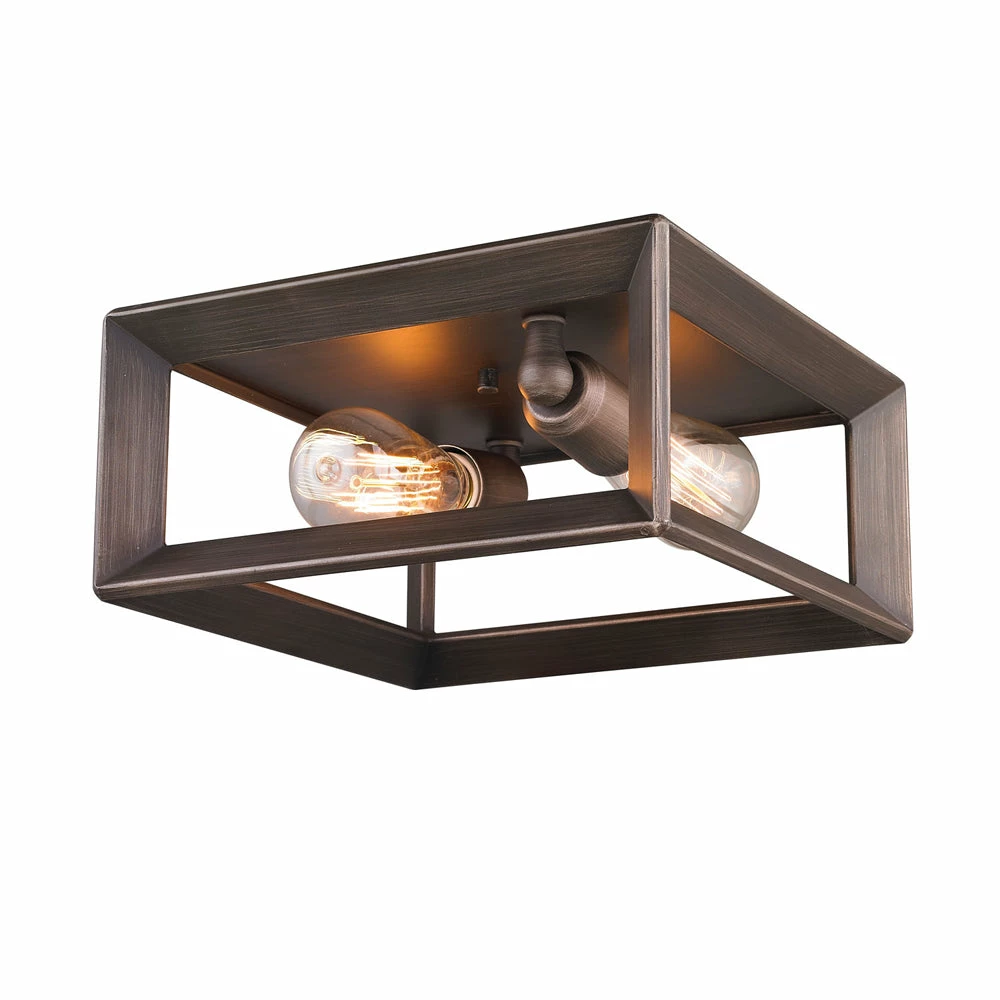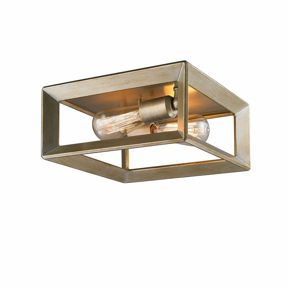 Modern lanterns featuring a handsome beveled cage design. Make an elegant statement in the Smyth collection. Clean geometry creates contemporary style with steel candles and candelabra bulbs encased in select glass options. The fixtures are offered in a variety of finishes. This 2-light flush mount creates a generous open area for widespread ambient lighting.