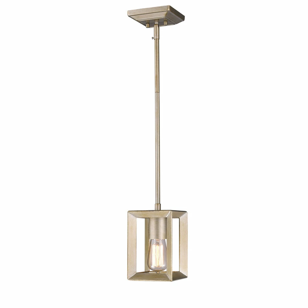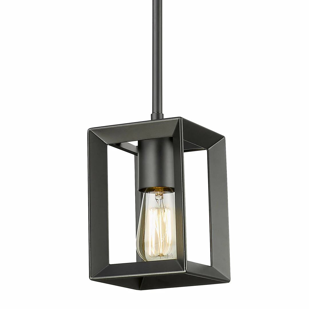Modern lanterns featuring a handsome beveled cage design. Make an elegant statement in the Smyth collection. Clean geometry creates contemporary style with steel candles and candelabra bulbs encased in select glass options. The fixtures are offered in a variety of finishes. Ideal for the kitchen, the mini pendant provides soft ambient downlight, illuminating a kitchen bar or countertop without interfering with activity on the surface.