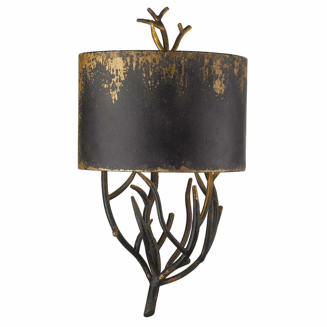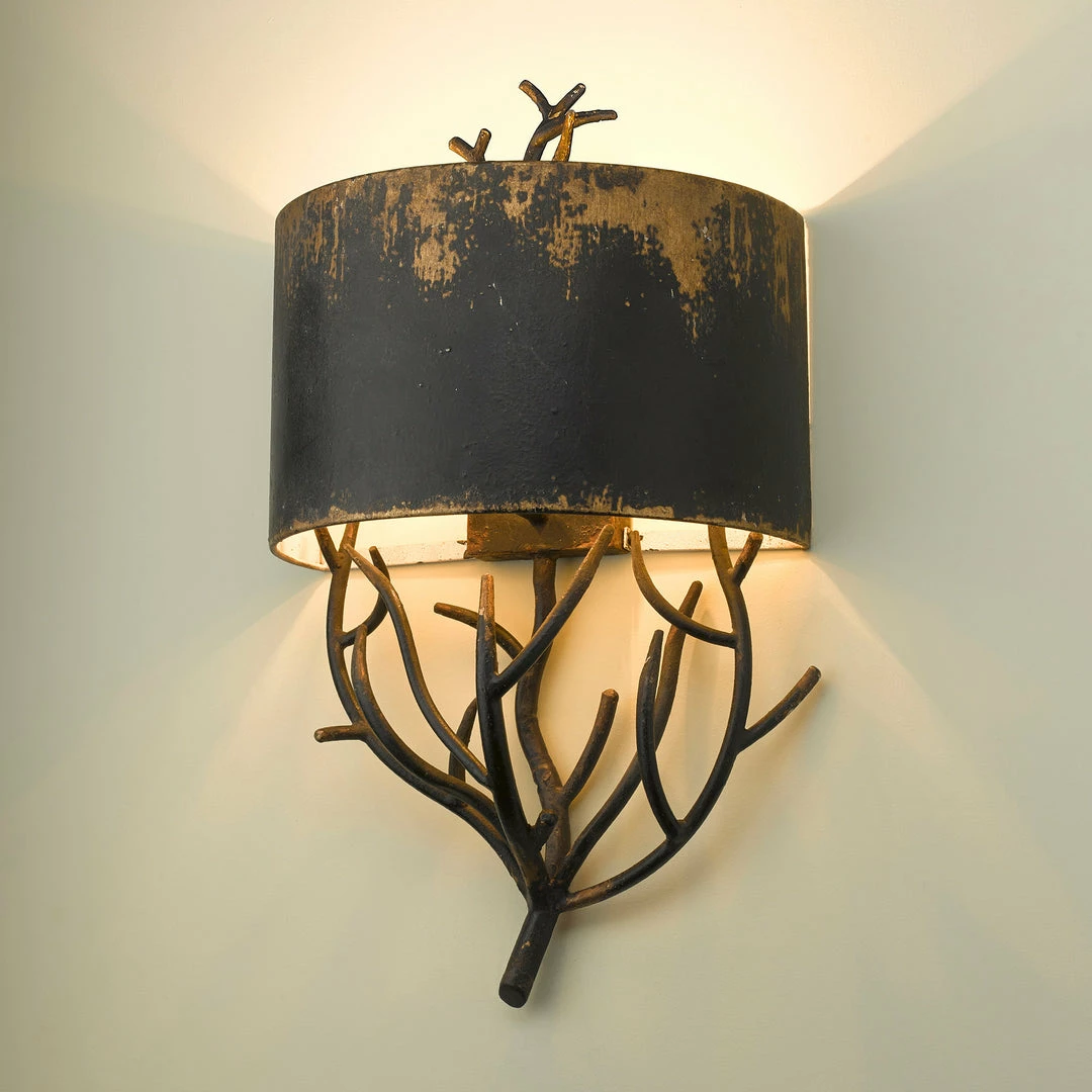 Bring a touch of rustic elegance to your space with Esmay. Nature-inspired, a sculpted branch is partially shielded by a half shade. Weathered gold highlights contrast the dark finish, while the intriguing shape tantalizes you to have a closer look. Use the style and function of this damp rated sconce to provide ambient up and down lighting anywhere you need it.