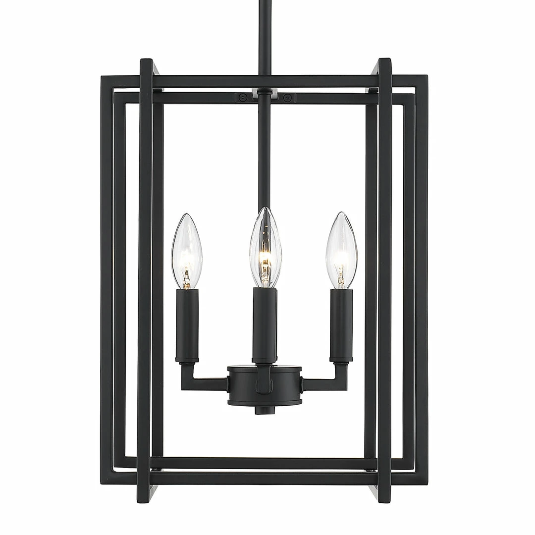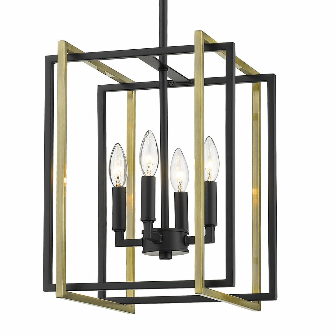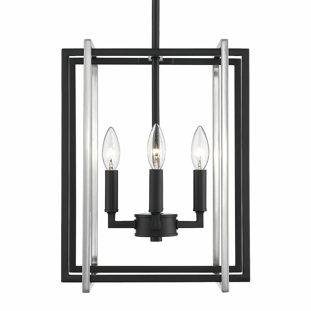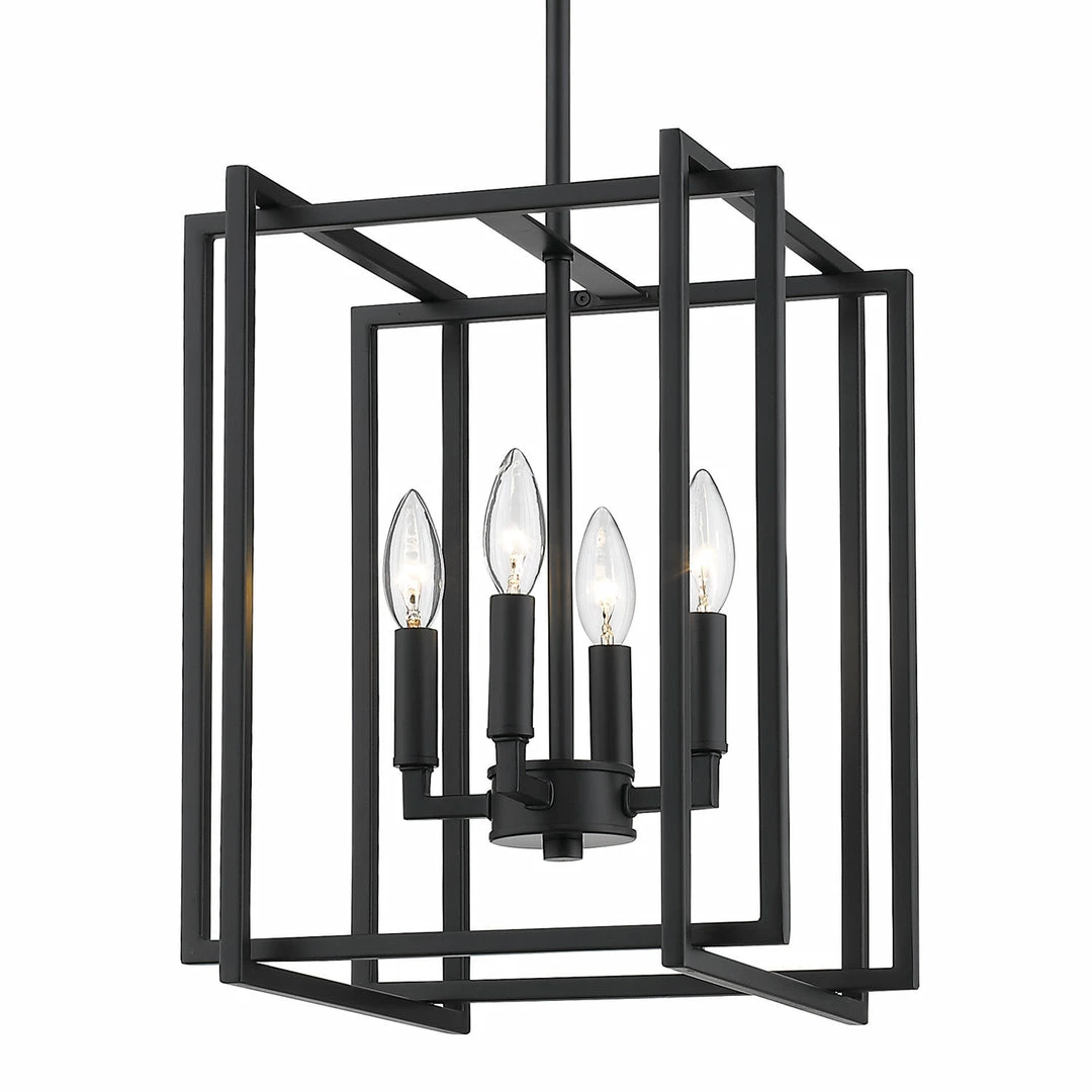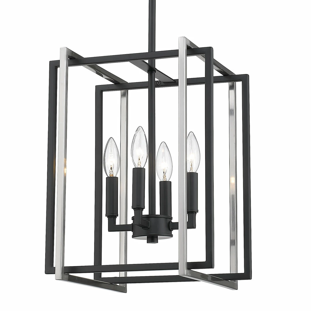 Tribeca is a contemporary, geometric series of customizable layered boxes. These striking open-cage fixtures bring sophisticated style to a space. Offered in a variety of finish options and silhouettes, including two-tone combinations, this clean transitional design pairs well with modern fashions. This 4-light chandelier creates a dramatic focal point and smooth ambient lighting.