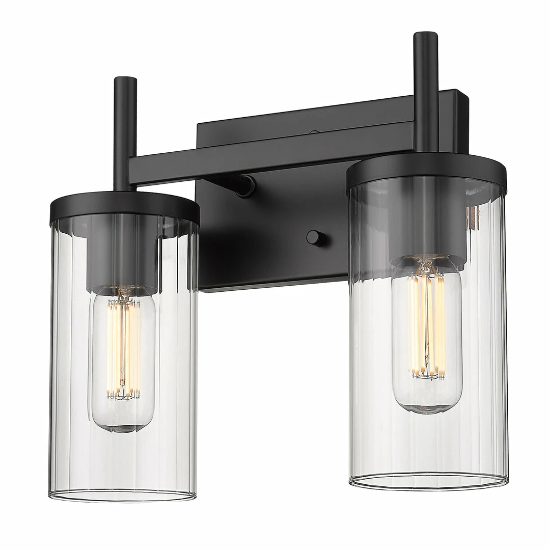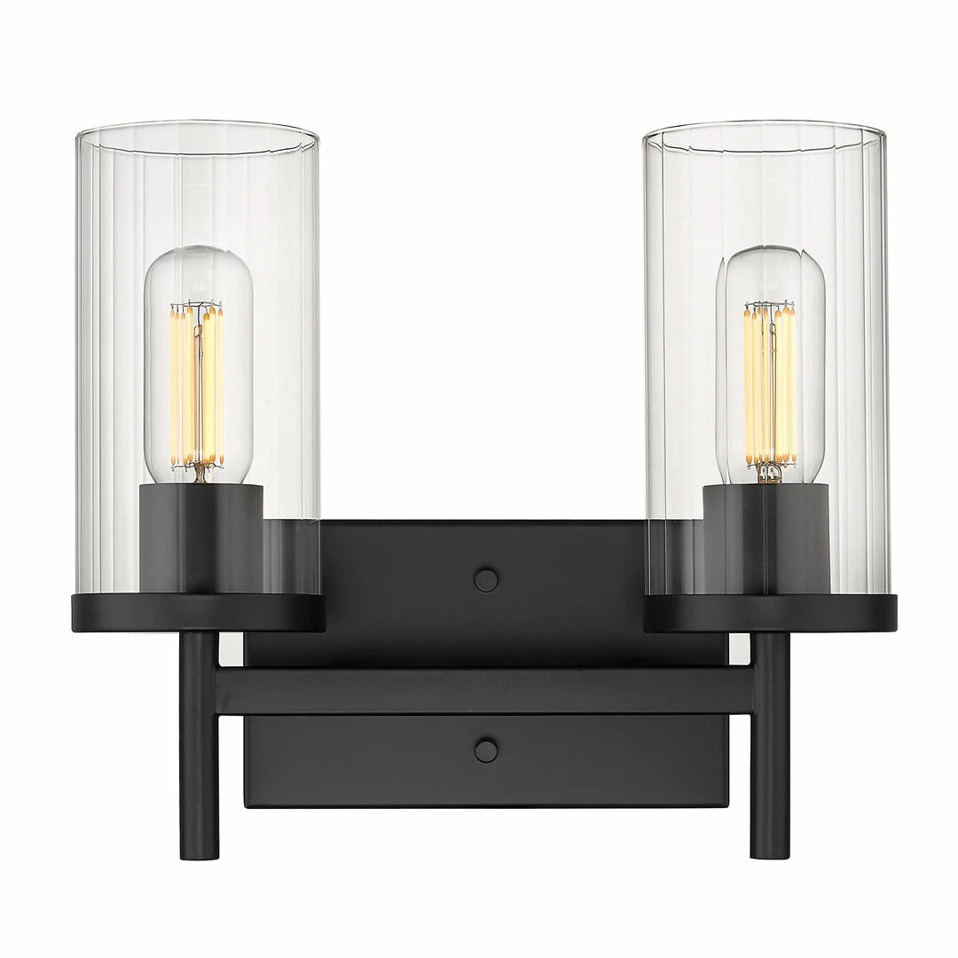 The Winslett collection is versatile and transitional in style. Classic silhouettes are perfectly matched with clean, modern lines for a mixture of form and function. Bright bulbs shine within ribbed clear glass shades. The linear texture, made by a glass-blowing technique, creates the optical illusion of distortion. The vertical lines in the glass provide gentle diffusion while playfully refracting light. Offered in a selection highly adaptable finishes, the Winslett collection is suitable for a variety of decors. This 2-light bath vanity is UL approved damp locations.