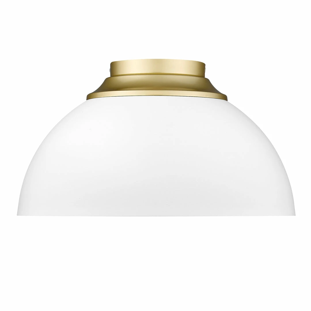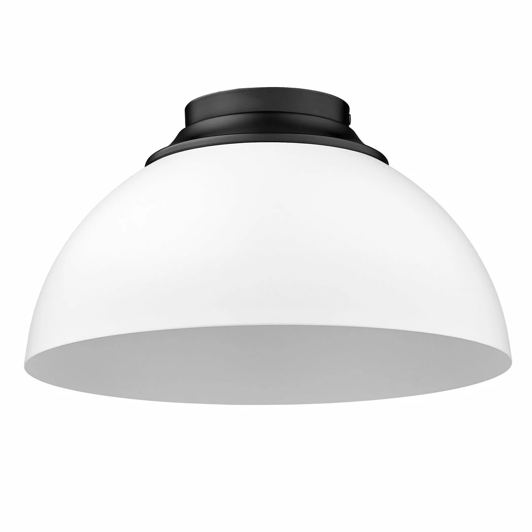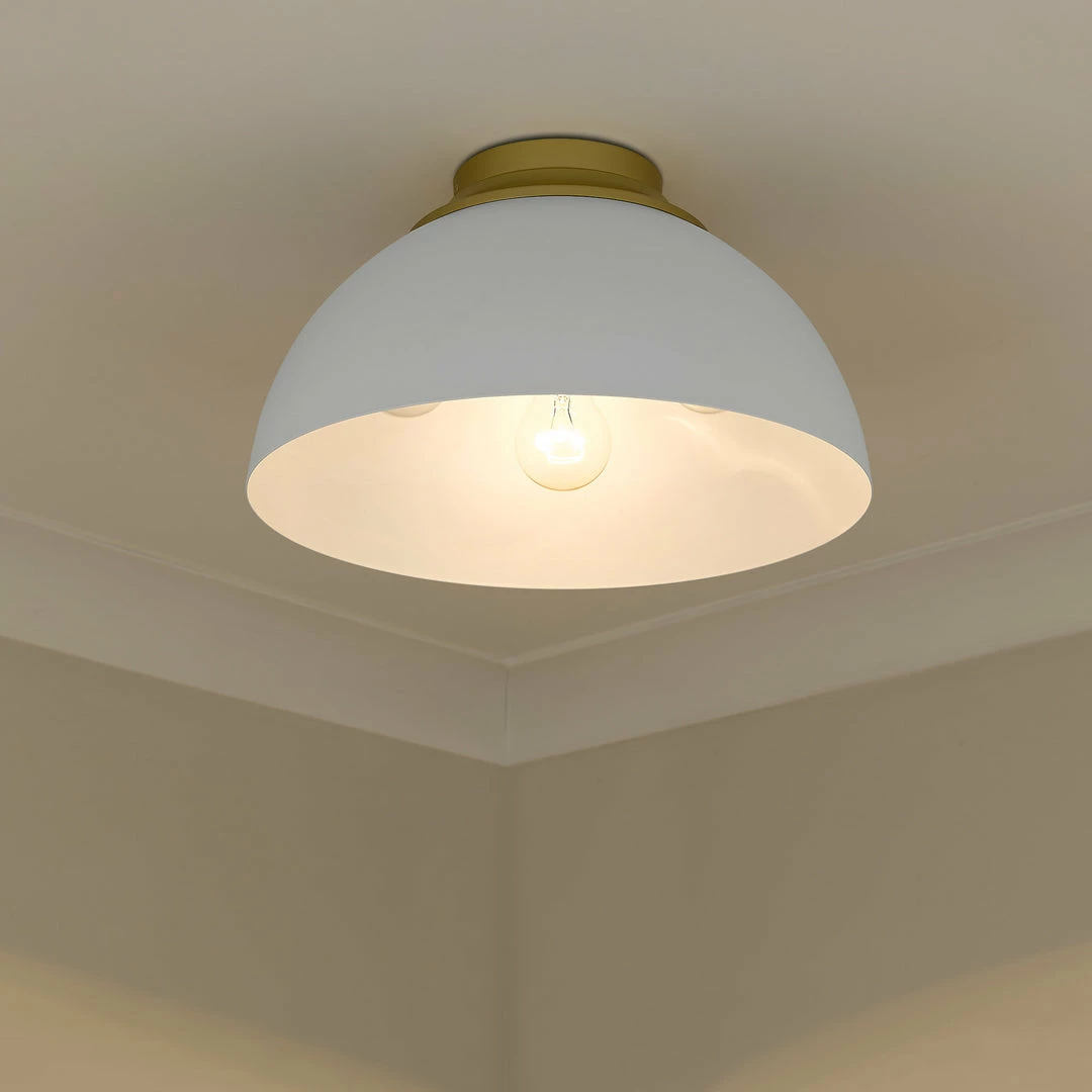 The Zoey Collection is proof that simple can be beautiful. This elegantly utilitarian series has the chic versatility to enhance the style of a variety of spaces. The smooth lines of this minimalist design pair well with transitional to modern dรฉcors. The cleanness of the contemporary look gives the fixtures a slightly industrial feel. Zoey is offered in a number of sizes with a combination of matte sheen shade and finish options available. The color of the shadeโs interior consistently matches the shadeโs exterior finish. The silhouette of the metal shade is a modern update to the classic dome shape. This Flush Mount is perfect for bathrooms, hallways, and kitchens.